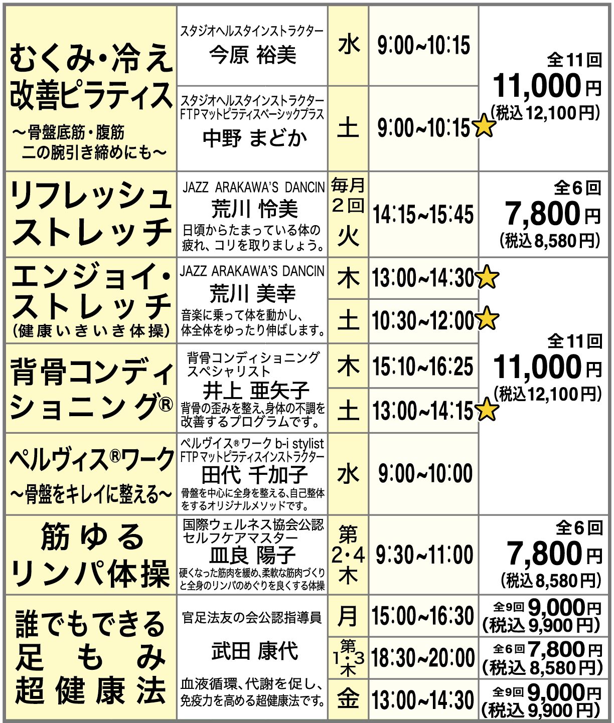 ☆1講座毎に施設維持費 3ヶ月 900円(税込990円) (月300円(税込330円)×3ヶ月)がかかります。(施設外講座、マナベル倶楽部は除く。ピアノは別料金)