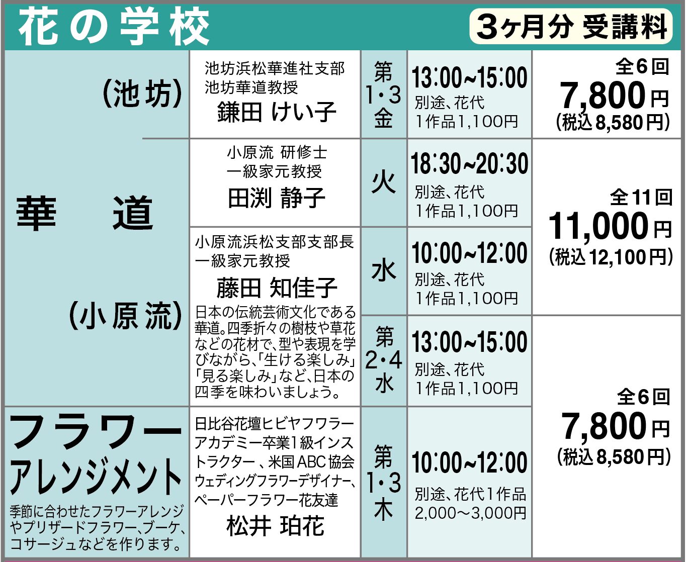 「社会保険センター浜松」華道講座華 道( 池 坊 )〜生け花で、暮らしに美しさと安らぎを〜今日この花と出会えて良かった。一輪の花を大切に、生け花を通じて多...