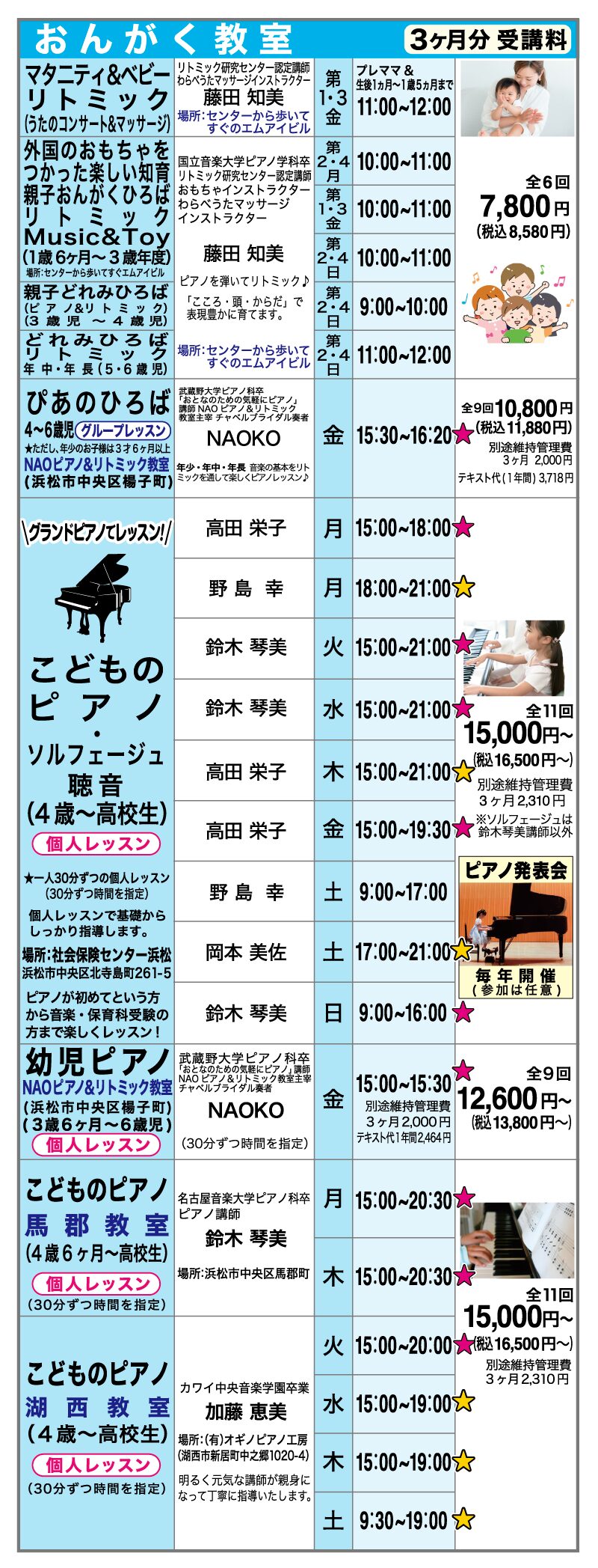 ※ピアノ個人レッスンは、見学はできませんが、空席がある場合は有料で体験はできます(要予約)。