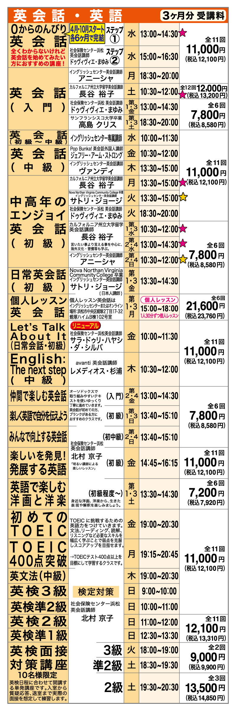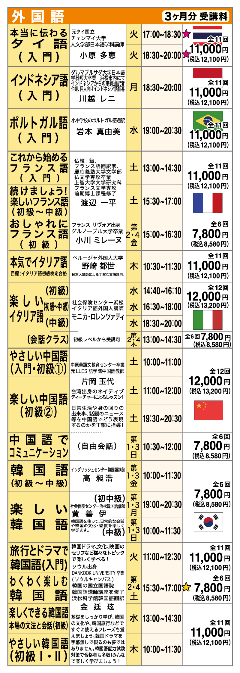 「社会保険センター浜松」英会話・英検・外国語教室(タイ語インドネシア語・ポルトガル語・フランス語・イタリア語・中国語・韓国語)
